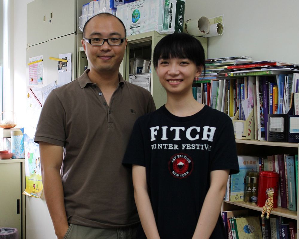 李夢倩(右)與國家衛生研究院博士後研究員姜杰合影。