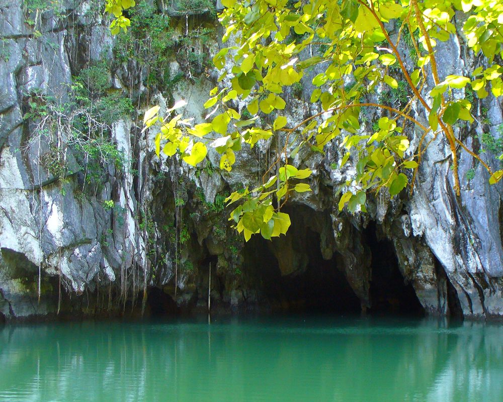 菲律賓巴拉望石灰岩地下河洞穴入口。