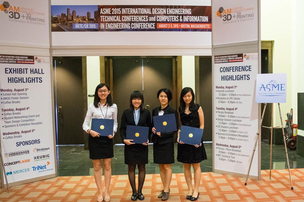 陳品衣、王彥婷、鄭羽涵、李涵宇(圖左至右)榮獲2014 ASME IDSC國際競賽雙冠軍。