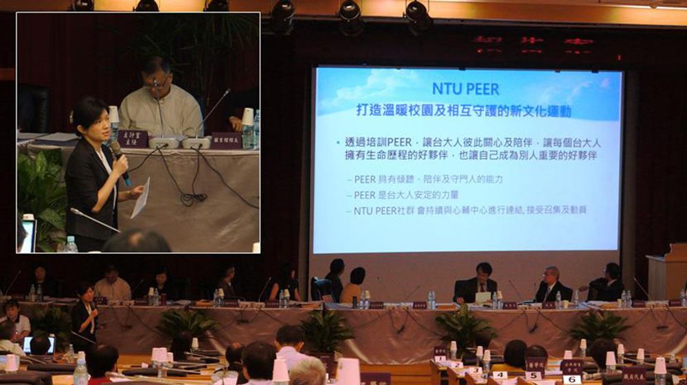學生事務處副學務長陳佳慧10月17日校務會議上報告NTU PEER培訓計畫。