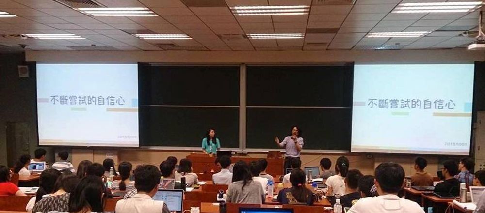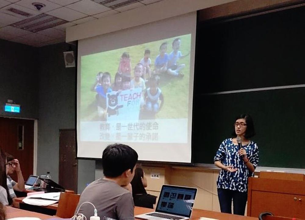 「為臺灣而教」創辦人劉安婷對臺大簡報課同學宣講為偏鄉教育努力的理念。