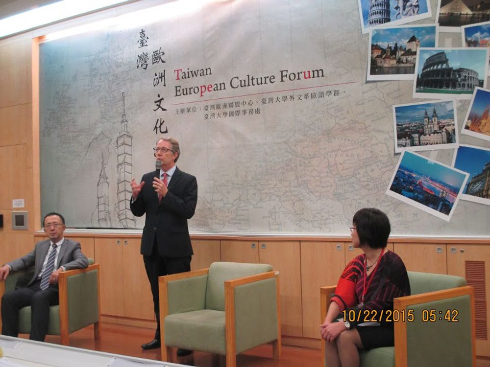 2015年10月22日第三場臺灣歐洲文化論壇「影像與藝術:歐洲電影中畫家與畫作的再現」於臺大博雅教學館舉行。本次活動係由臺灣歐洲聯盟中心、臺灣大學外文系歐語學群與臺灣大學國際事務處聯合主辦,希冀能藉由此一文化饗宴,將歐洲語言和文化帶出學院,延展至校園與社區,與普羅大眾一同豐富臺灣歐語文化的底蘊。