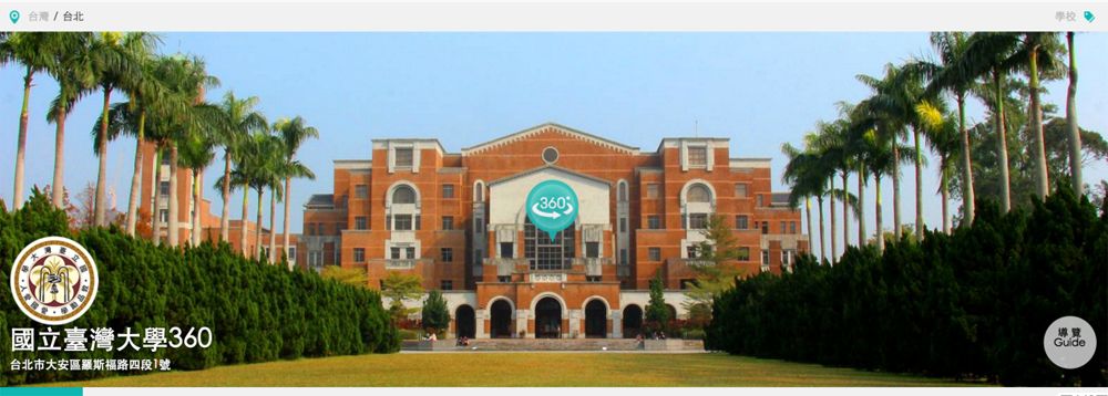 透過iClick愛點科技股份有限公司Google360度拍攝,讓全球的民眾可以在網路上360度導覽臺大。