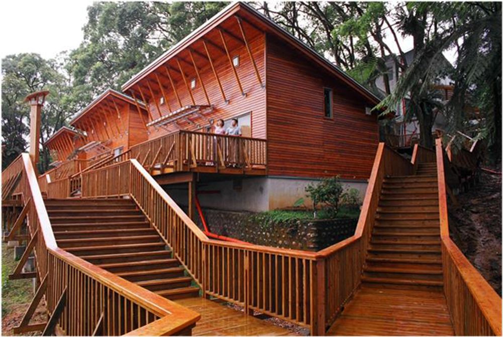 在木造的觀景迴廊俯瞰麒麟潭、遠眺凍頂山茶鄉及濁水溪流域等美景,景觀宏偉秀麗,有「東方小瑞士」之美名。