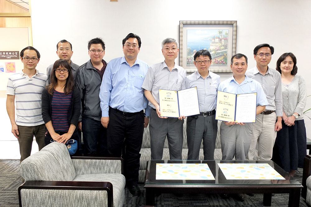 財團法人國家實驗研究院國家奈米元件實驗室(NARL-NDL) 與工學院奈米機電系統研究中心(NTU-NEMS)在工學院顏家鈺院長見證下,由奈米機電系統研究中心胡文聰主任與國家實驗研究院奈米元件實驗室葉文冠主任代表簽屬,共同宣布雙方簽訂合作備忘錄(MOU),協議透過策略性合作,共同培育我國未來發展所需專精領域之頂尖人才及研究團隊。