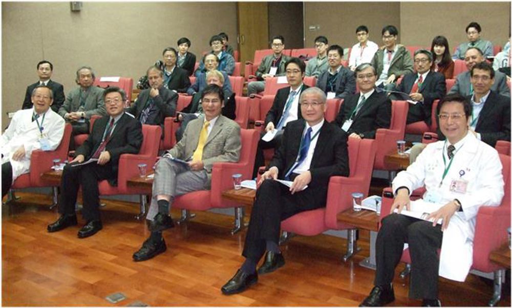 與會貴賓第一排右起:張上淳院長、楊泮池校長、陳良基副校長、陳銘憲院長、江福田主任;第二排右起、Dr. Seward Rutkove、Prof. Ichiro Sakuma、Dr. Naoto Kunii、Prof. Jan Rabaey、Dr. Itzhak Fried、電機系汪重光教授、電機系呂學士教授;第三排右一Dr. Christopher Giza、右二Dr. Ichiro Nishimura。
