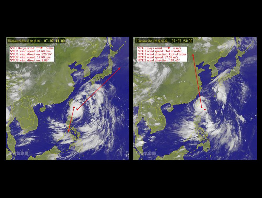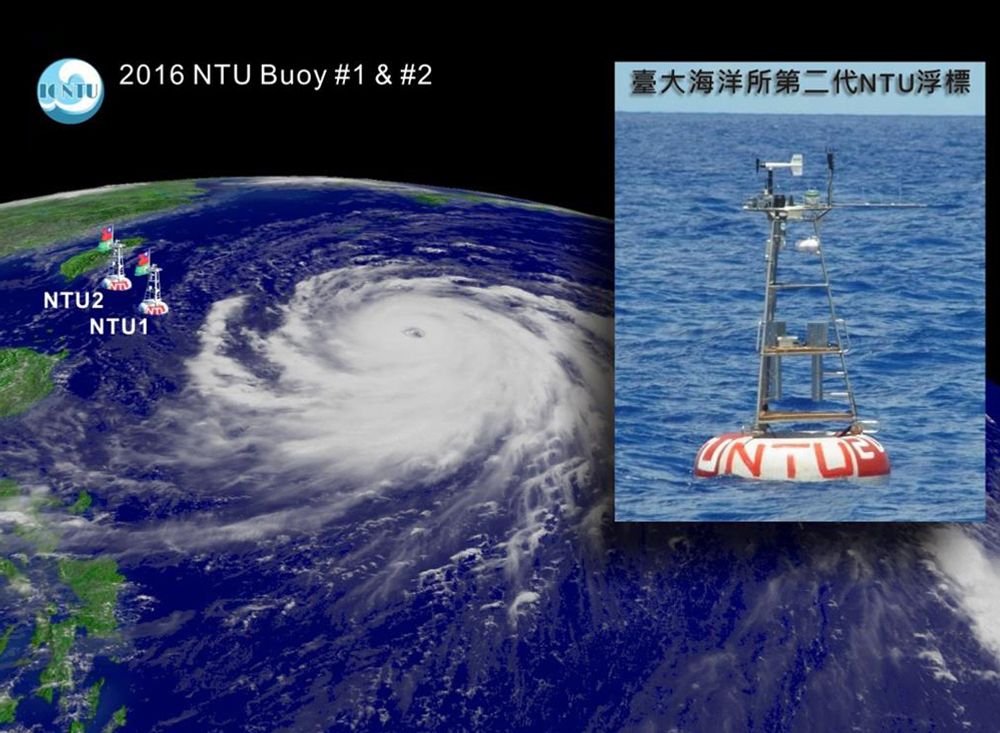 本次浮標觀測是在海洋所魏慶琳所長推動之下,繼去年颱風季佈放的「第一代」NTU海氣象即時觀測浮標後之接續任務。由楊穎堅老師和張宏毅、邱協棟兩位資深技術師帶領浮標團隊根據去年的經驗,重新設計、整合兩組「第二代」NTU海氣象自動觀測浮標,低耗電系統的設計讓觀測項目大幅增加,使用多種探針和儀器,包括溫濕度計、旋葉式風速風向計、超音波風速風向計、氣壓計、雨量計、短波日照儀、淨輻射儀、表水溫度計、海流儀、溫鹽深儀、溫壓儀、以及不具資料即時傳送功能的溫壓儀。浮標的中控系統新增無線電與衛星遙控功能,可依任務需求調整取樣密度與傳輸頻率。另外,浮標上也安裝了一部縮時攝影機,可以拍攝不同風速下的海上浪況。水下部分則捨棄了原有的ICC通訊介面,改以自行設計的通訊裝置,減少被破壞的風險,每個探針下方甚至加裝了自行設計的特殊裝置,避開延繩釣釣線糾纏,現場浮標佈放作業則由理學院貴儀中心海洋探勘組何文華組長在海研一號上指揮。本次浮標觀測任務中,除了感謝海研一號和貴儀中心海洋探勘組同仁在汪洋中頂著烈焰執行艱苦的現場工作外,海洋所特別感謝本校大氣系提供氣象觀測坪,供氣象探針的測試與校正,浮標之設計、整合、組裝、測試、佈放和通訊等所需經費,大部分由海洋所自籌推動,這次浮標施放承理學院的邁頂亮點經費補助購置海流儀、中央氣象局海象中心提供了四個溫壓儀,使得量測參數更為完備;此外也感謝科技部支助海洋所教授的「黑潮研究-II」(簡稱SK-II)整合計畫合作及分享部分海研一號船期協助佈放此兩組浮標。2015、2016年浮標所有觀測資料圖像均在海洋所網頁公布(http://www.oc.ntu.edu.tw/或htt…//po.oc.ntu.edu.tw/…/index.php),歡迎各界隨時瀏覽。