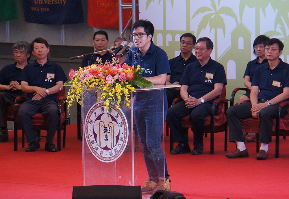 恭喜大家,在經歷了四年的大學生涯之後,想必經歷了許多的積累、努力:這些,或許是你我樂在其中的、也可能是寒窗苦讀多日後的成果。你、我終究可以在今天踏上椰林大道,感受這座充滿歷史、故事、記憶的知識殿堂臺灣大學所帶給我們的美好。我想邀請在座的每位新生,給予自己最大的掌聲,因為你、我,將持續在臺灣這片美麗的土地上,編織人類文明的知識結晶。