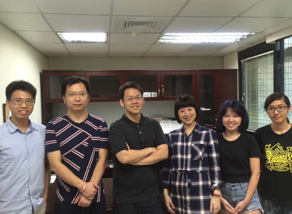 左起:生醫所研究助理姚秉瑜、生醫所博士後研究員林榮辰、生醫所助研究員胡哲銘、獸醫系助理教授陳慧文、獸醫系研究生黃湞鈺、獸醫系研究生方紫珣。