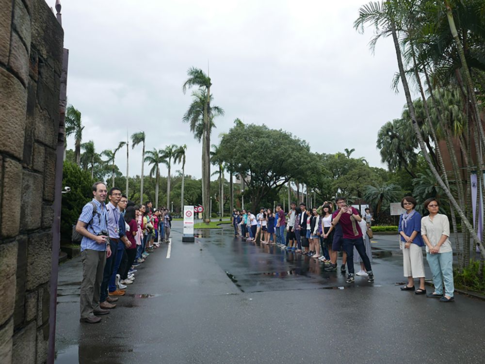 人類系師生於臺大校門口夾道歡迎。