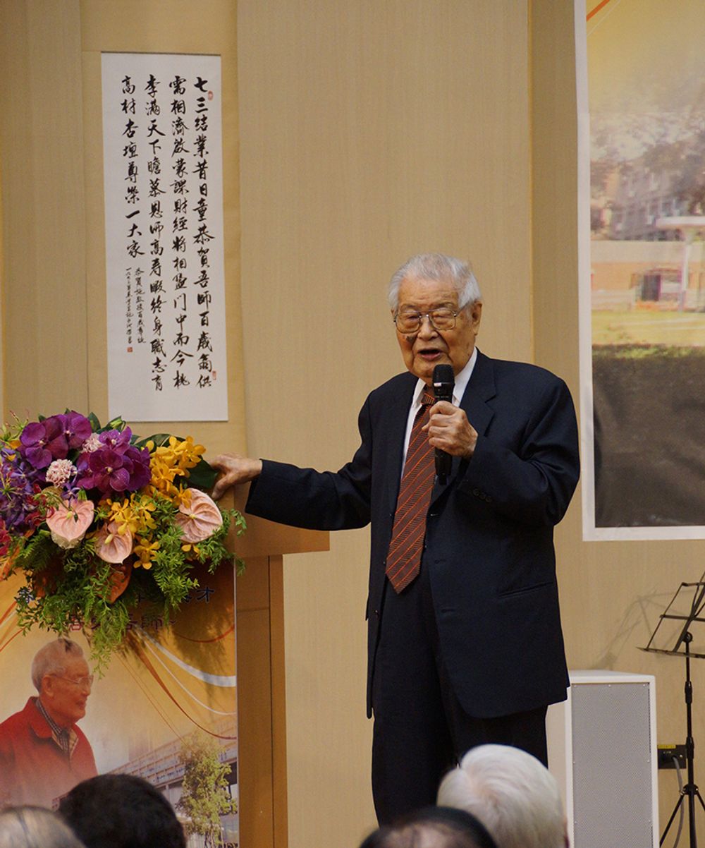 開場請施老師的學生,曾經擔任過施老師助教的孫震前校長,致辭祝福。孫校長風趣生動提及往事,感謝老師的教誨和期許,孫校長說:「更感安慰的是,雖然進入晚年,也許已經是暮年,仍有師長健在,讓我們孺慕和仰望。我常引用李鴻章晚年一聯詩句:『再無朝臣稱大老,猶有慈親呼小名。』這就是為什麼我覺得今天在這裏慶祝施建生老師的百歲華誕是我們大家的福氣」。我想這是許多在座嘉賓的心聲。