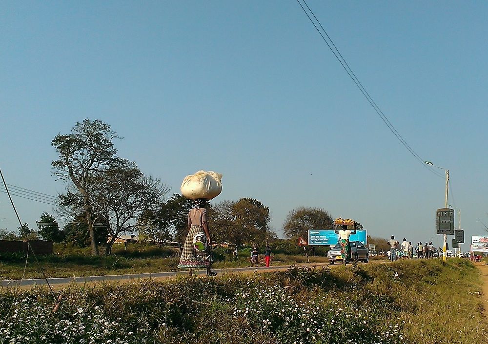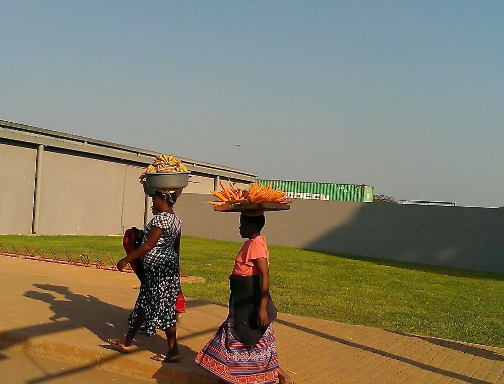對於非洲特殊風土民情的好奇,莫過於婦女能頭頂重物自在行走。到底她們可以頭頂多重的東西?直接問那位送豆漿到排球場的婦人,她說五公斤、十公斤小意思,二十公斤也是常有的事。而且她頭頂十公斤的桶裝豆漿,還是一樣安穩地走著,讓人驚嘆她身軀平衡的能耐!再問為什麼都是女性在頂,沒有看到男仕也用頭頂來搬重物,她笑答: “Culture!”。