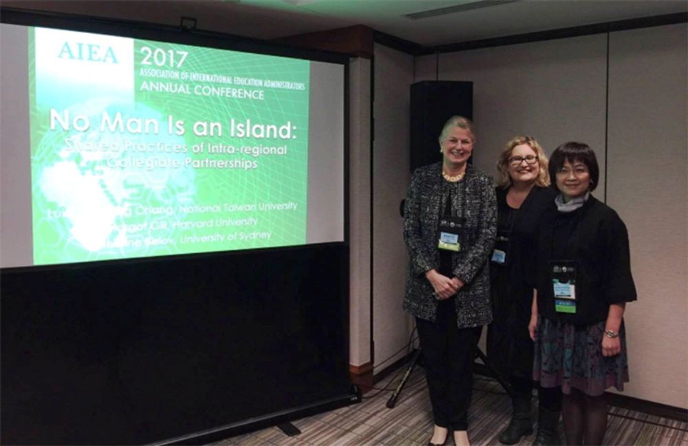 國際處近三年來積極參與 AIEA,幾為台灣唯一參與並發表論壇講演的大學,且均以結合頂尖大學或長期合作夥伴學校為目標,共同投稿、同場次發表各自校園國際化的策略與發展。三年來共發表5 場演講,尤其近兩年,成功結合哈佛大學藝術與科學學院國際處,投遞論壇分項主題,均獲大獲接受發表。前兩年均由傅友祥副國際長代表參加,今年本校再次結合哈佛大學,並與雪梨大學一起談論「區域重點大學策略聯盟」,哈佛談論其與拉丁美洲各國各種學術、學生實習、社會服務…等合作成果; 雪梨大學談論其與加州大學戴維斯分校、香港大學的重點策略聯盟,以及與本校正在談論的重點合作要點。另一個主題則是與美國南卡大學和早稻田大學談論「東南亞-南向政策」的項目。南卡與我校合作密切,今年五月並將帶領學生團到本校進行短期教學;早稻田大學與本校更是多元合作:舉凡雙學位、交換生、短期班等效果卓著。他山之石,可以攻錯,未來本校國際教育的南向策略亦可借鏡此兩校經驗,或是朝三邊連結的模式發展。