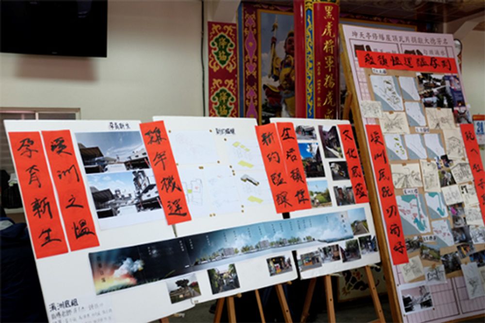 在五天的工作坊課程,我被分配到溪州底聚落,和來自不同學校不同科系的組員一起進行密集的田野調查、居民訪談、討論交流,每晚都會在社子島的坤天亭向居民報告每天的階段性結果。最後一天則是民眾論壇,在坤天亭對居民與專家學者報告三組最後各自研擬的「聚落計畫」。