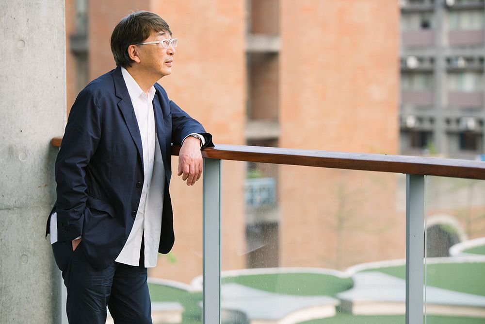 圖為伊東豊雄於社科院三樓花園,這是建築師繼2014年啟用典禮後首次回訪使用中的社科院,這次論壇試圖討論建築做為公共藝術,師生們該怎麼去看待、如何欣賞及體驗。藝文中心策畫的「藝術之窗校園尋美」計畫即是引入不同的展演活動進入社科院建築,找回師生們對於美的意識。(陳宥中攝)