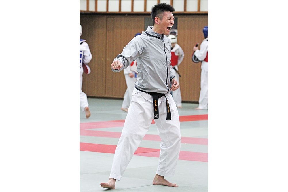 臺大法律四彭浩官是現任跆拳道隊長,去年全大運獲得品勢個人組第二名。攝影/陳芊聿