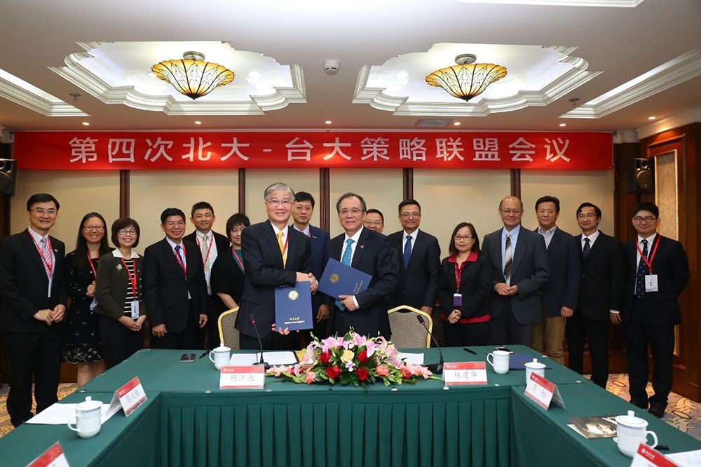 2017年4月 25-26日,應北京大學林建華校長邀請,楊泮池校長率領臺大師生團隊共 77 名師生回訪北京大學,進行為期兩天的「北大臺大日」活動,楊泮池校長發表兩場專題演講:「從臨床到轉譯研究和高等教育」 以及「New era of lung cancer therapy: From precision to cure」,連結並深耕兩校的「重點大學策略聯盟」目標,希冀共創學術合作春秋。