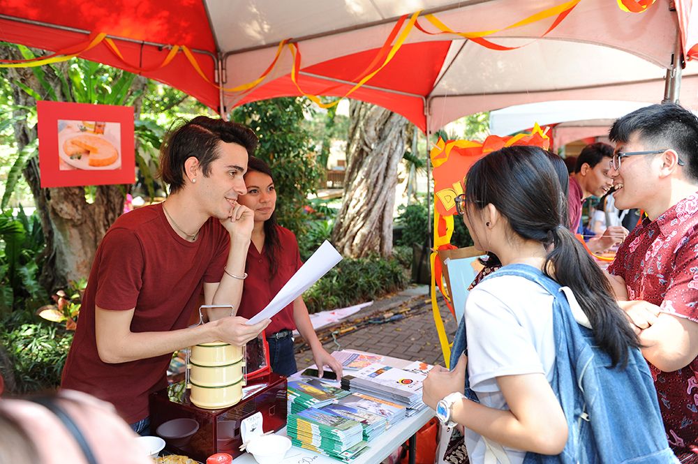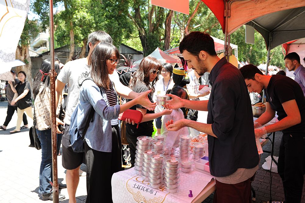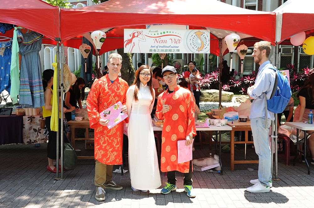 緊接在開幕式之後便是異國文化美食展,今年共計20個由本校僑陸及國際生社團和不同國家的學生設攤展售其獨特文化與美食,除了緬甸的豌豆粉、馬來西亞的沙嗲串和肉骨茶、尼加拉瓜莎莎醬玉米脆片、土耳其現烤雞肉捲外,蒙古同學更用心地在現場架一座蒙古包提供民眾入內參觀,無不給與參觀民眾帶來一趟實質異國饗宴以及文化之旅。許多民眾參觀後紛紛讚賞學生在攤位佈置及美食烹飪上的用心,同時也建議未來可以考慮延長活動時間。值得注意的是,今年活動整體的硬體設備更加升級,會場中央搭起了舞台,除了讓開幕式更加精采外,同時也在下午提供了各攤位宣傳的平台,更有蒙古、馬來西亞的學生踴躍報名上台表演傳統歌曲與舞蹈,不遺餘力的宣揚自身文化。