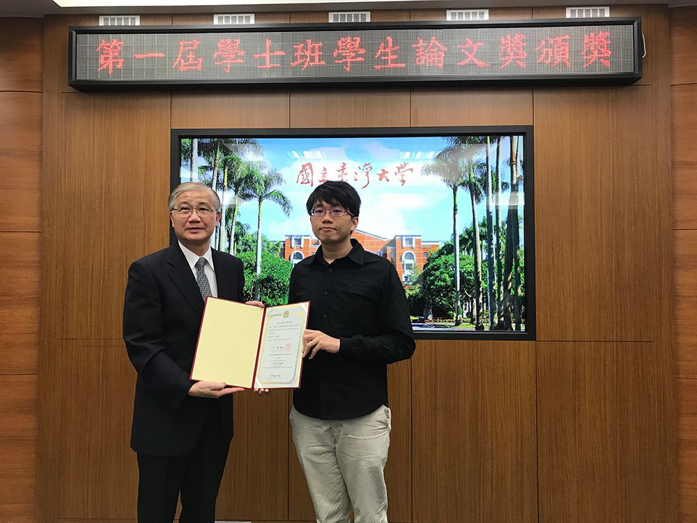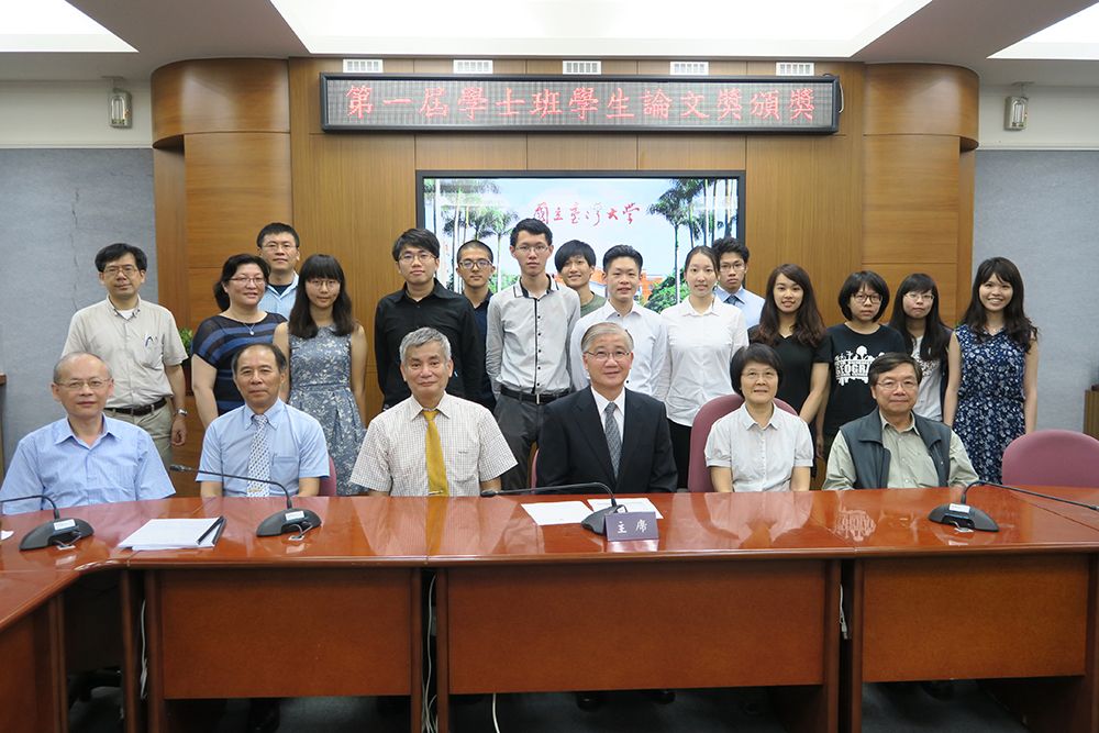 本校第一屆學士班學生論文獎頒獎典禮106年6月16日上午在校總區第二行政大樓第4會議室舉行,由楊泮池校長親自頒發,獲獎者共計十二名,獎項包括:(一)傅斯年獎2名、(二)校長獎2名、(三)院長獎7名、(四)優良獎1名。