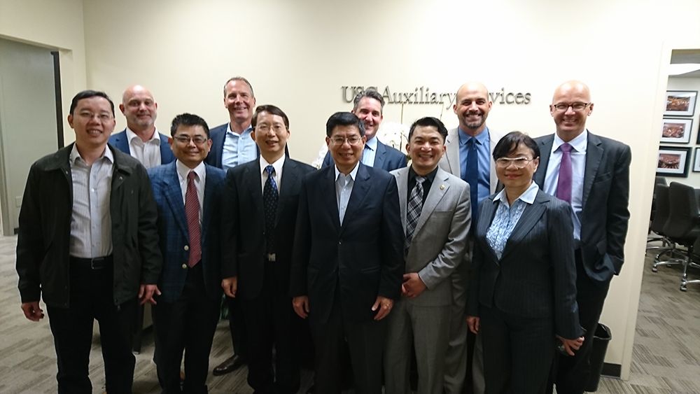 臺大第一次為學生飲食安全與健康而出國取經。學務長陳聰富教授和副國際長傅友祥教授率員於2017年6月1-2日訪視兩所姐妹校─私立的美國南加州大學(University of South California)與公立的加州大學洛杉磯校區(University of California,Los Angeles)─的校園餐飲系統。同行的專家同仁有公衛學院詹長權副院長、生技中心副主任暨營養學教授蕭寧馨、膳食委員會許駿逸營養師和學生保健中心池岸軒醫師。此項參訪可啟發健康飲食環境的創意。臺大不僅有知識和學術成果,也可為促進師生健康創新模式,進而嘉惠全國大專校園。