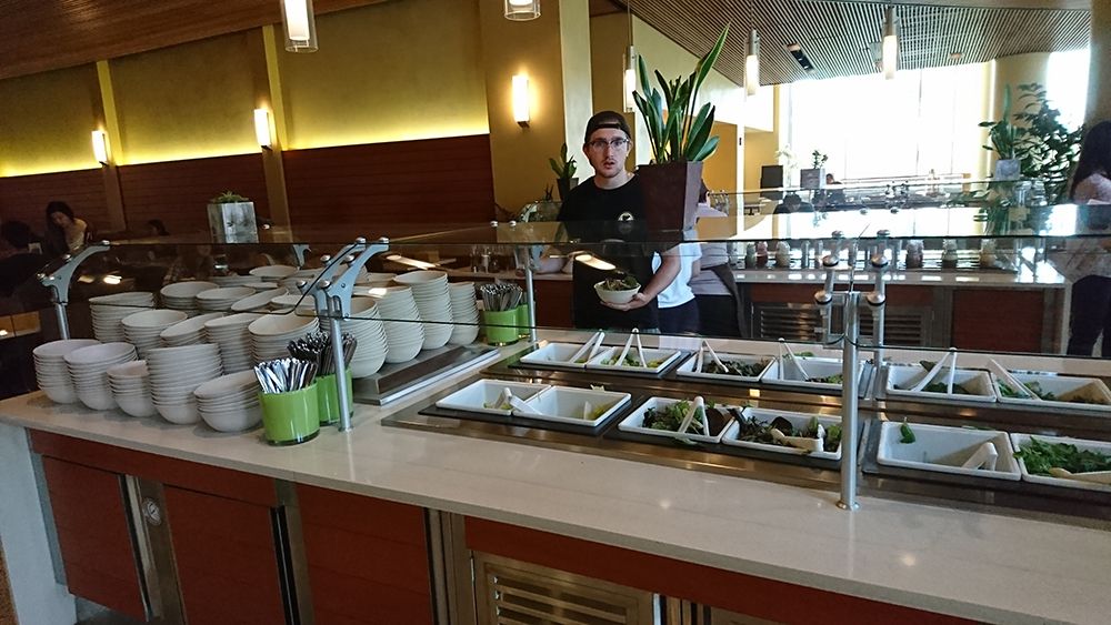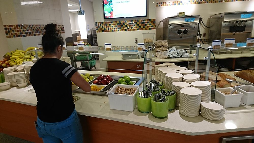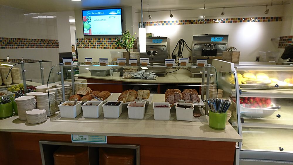 年輕人的飲食行為大翻轉。炸薯條不見了!沙拉碗加大,主餐盤從8寸縮減為6吋,漢堡變小如餐包,設置素食和半素食專區,而且鼓勵不用托盤(dine tray-free);這些措施都可避免取餐過量,減少廚餘,因而節省清理的能源與用水。醬料、飲料和甜點並沒有消失,但是醬料是自製的堅果醬和果醬等,飲料是新鮮的天然果汁和果汁調味的氣泡飲,甜點區則增加水果選項。飲料可以DIY,三明治和披薩現場製作,有許多蔬菜豆類配料可供挑選。