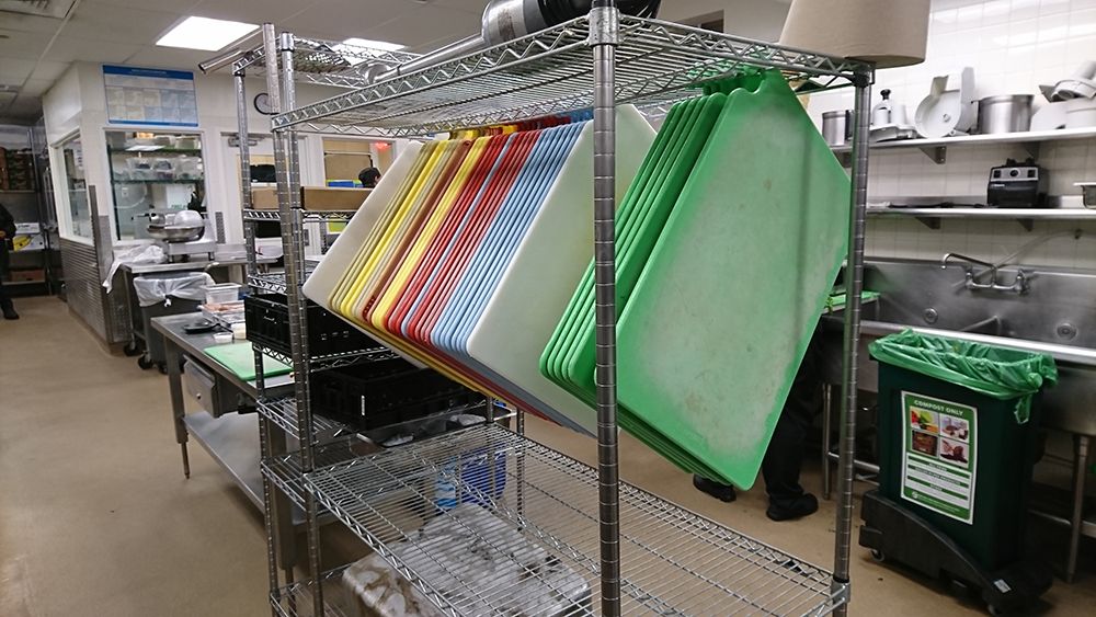 維護餐飲衛生:全面採用標準作業流程(SOP),並有第三方評鑑機構。這是我們最關切的重點,兩校的作法大同小異。廚房與餐廳的各項SOP都必需符合市衛生局與州政府的規範。除了校內的總監之外,都與第三方衛生品質服務公司或評鑑機構合作─UCLA與ServSafe,USC與Everclean Services。校內外人員定期親臨檢視餐廳廚房等,隨時作成報告提供校方修正。為了精準控制品質,廚房採用優質設備與科技化監控,大大地降低食物中毒風險,例如UCLA廚房的每個冰箱都有溫控紀錄與警報器,可及早發現風險而應變,減少食材因變質廢棄的經濟損失;廚房清潔明亮,週全而有效的排水設施使每日清理不致積水,地板永遠乾爽,消除傳染媒介的孳生和散布。