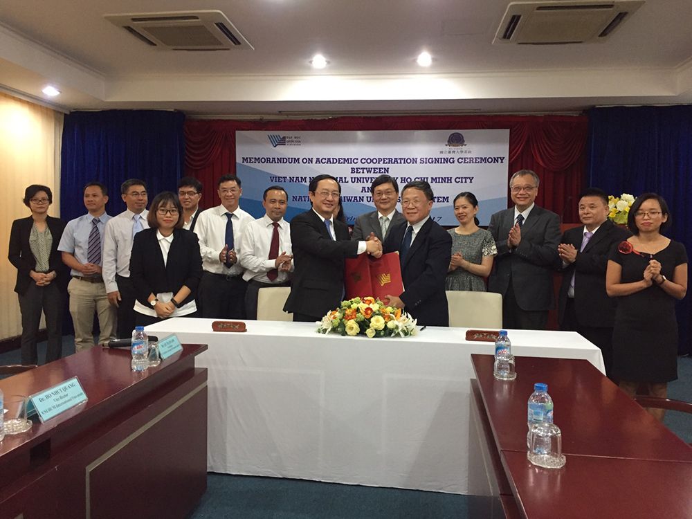 國立臺灣大學系統是由國立臺灣大學,國立臺灣師範大學及國立臺灣科技大學組成的大學系統,擁有臺灣最優質的科學教師和研究人員,不僅在臺灣、而且在亞洲地區都是頂尖的大學系統。本次聯袂出訪越南胡志明市國家大學系統完成簽署合作備忘錄積極發展雙方未來合作事宜亦是臺灣與東南亞地區高等教育合作的重要里程碑,本次簽署備忘錄,臺北駐越南梁光中處長等貴賓亦親臨盛會以表誌慶。