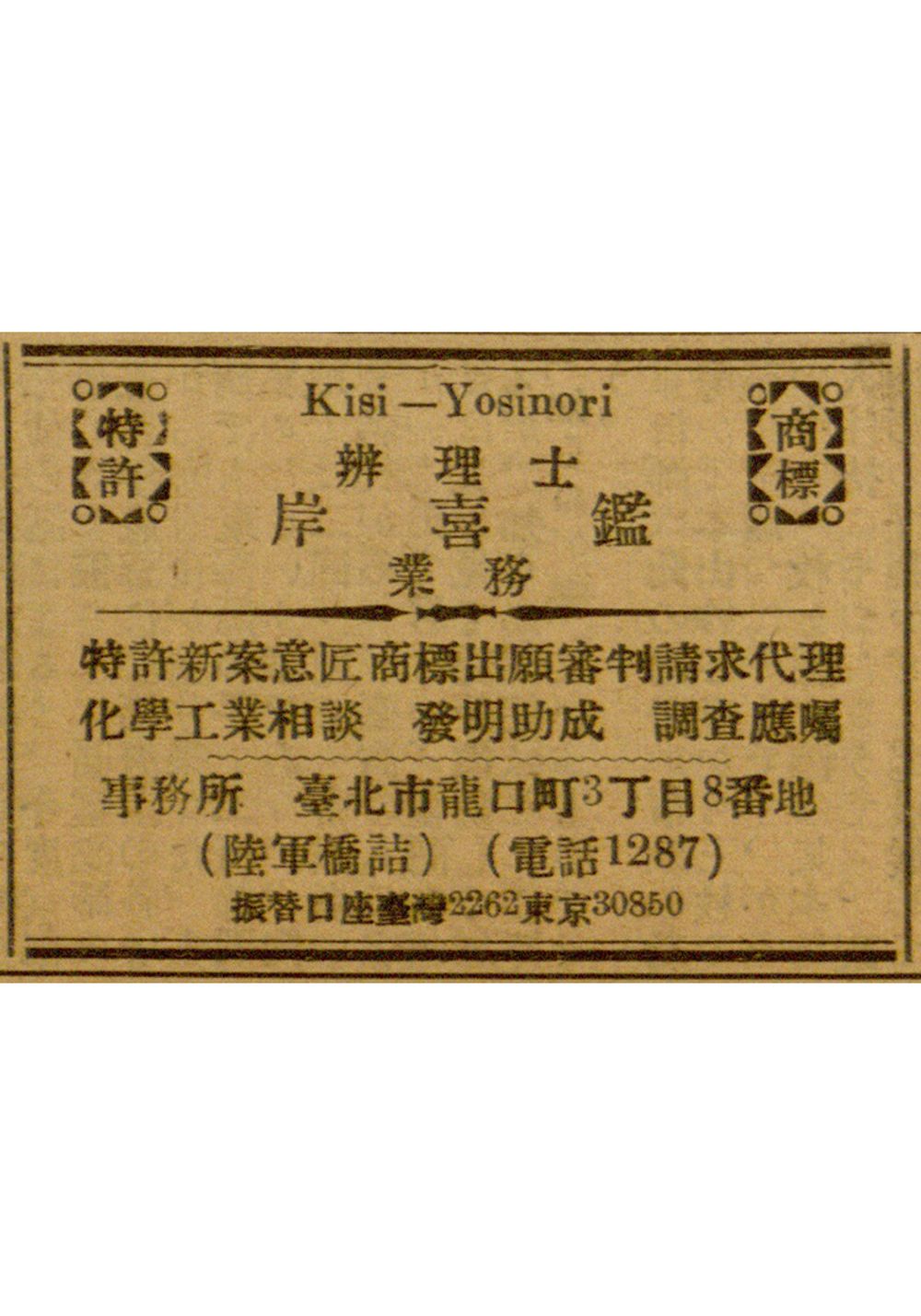 日治中期關於代辦商標專利的廣告