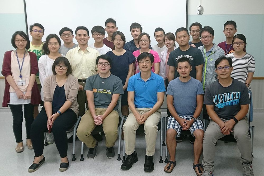 林頌然教授組織工程與再生實驗室團體合照,照片中有本研究的第一作者為醫學工程研究所黃文彥博士(第一排右二),通訊作者為醫學工程研究所暨皮膚科林頌然教授(第一排右三)及參與研究的團隊成員包括台大醫院腫瘤學部賴詩璠醫師(第二排右四),皮膚部邱顯鎰醫師(第二排右二)。