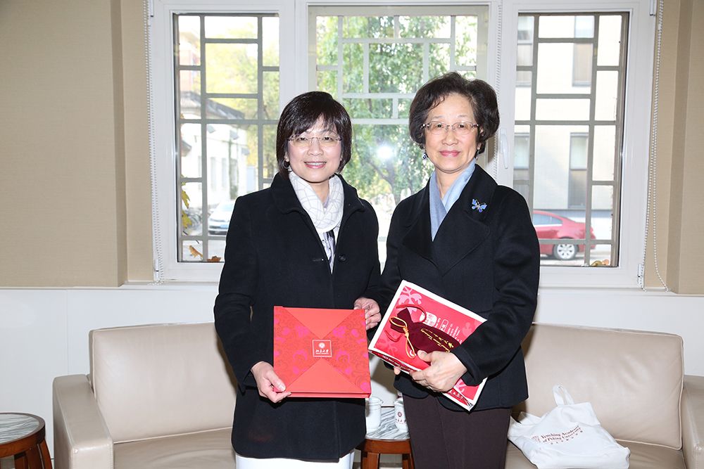 燕京學院袁明院長特地於演講後在靜園接待張國際長。兩人相談甚歡。袁院長與張國際長交換意見,說明燕京學堂的使命,以及擔任院長的挑戰,尤其燕京學堂迄今仍處於「實驗階段」,如何將「實驗」化為常態「實踐」,讓國際生定心、放心、專心完成碩士學程,以及學習華語和文化,諸此都是挑戰。說到此,袁院長稱許臺大的華語教學和早期的史丹佛研究中心(即今之 ICLP),當今許多國際人士嫻熟華語者都是在臺灣學習,打下良好基礎。袁明院長表示樂意到臺大來觀摩我們的教學與研究環境。渠本身為外交政治專業,在臺灣有許多友好,提及她曾受邀至本校演講,然時已多年,張國際長隨即邀請,歡迎她來臺大訪問。