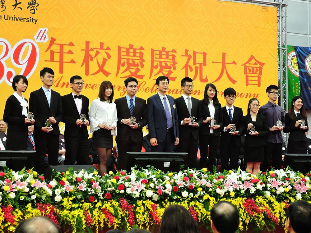 今天也要頒發「學生社會奉獻特別獎」給推動遺址活化結合社區營造的尤尊毅同學及以奉獻精神回饋族群的胡哲豪同學,還有努力耕耘研發長期教育資助平台、永續影響台灣社會服務的「遠山呼喚」團隊,他們都是實踐臺大「敦品勵學、愛國愛人」校訓的最佳典範。今天也將頒發優秀青年獎牌及書卷獎以茲表揚同學熱心服務、創新發展及精進課業的表現。