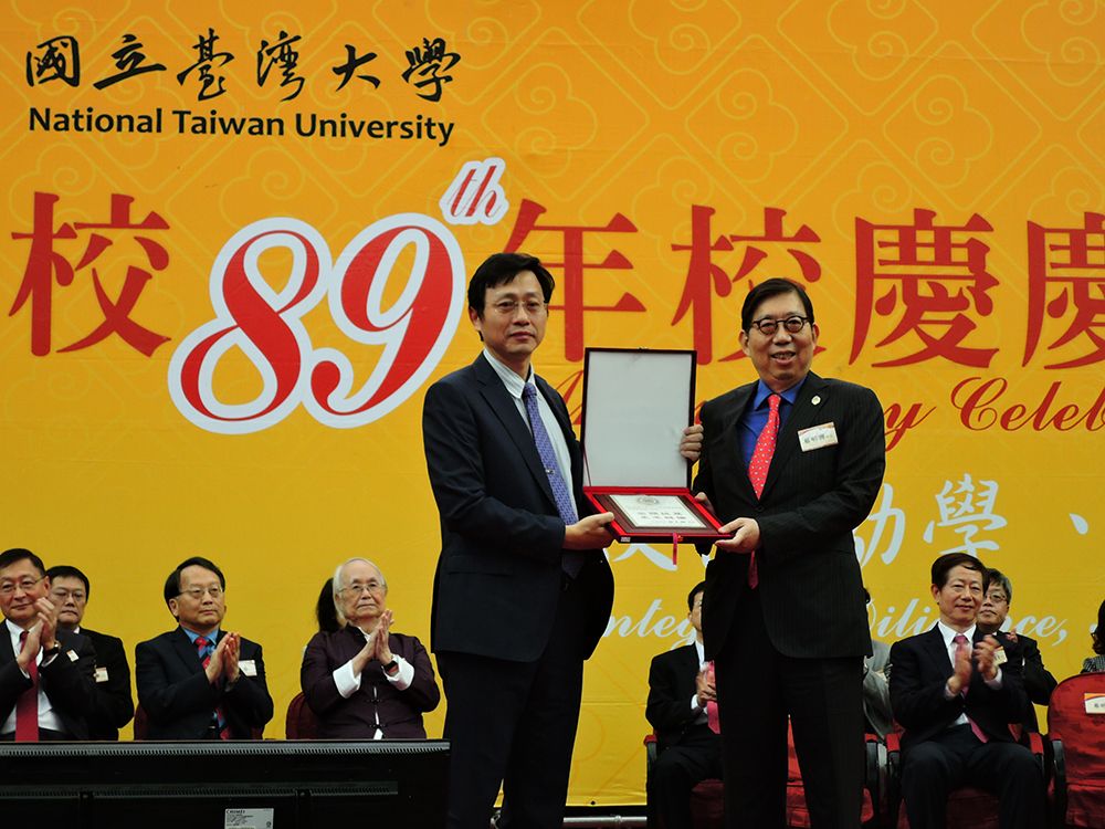 今天欣逢臺灣大學創校八十九周年校慶,創校以來,臺大培育無數傑出人才,臺大人在各行各業扮演領導的角色,對社會、國家、人類福祉做出重大貢獻。所以今天在這個隆重的場合,我們要頒予臺大人數個重要獎項,以表揚他們的貢獻,也彰顯臺大人「取之於社會、奉獻於社會」的重要核心價值。