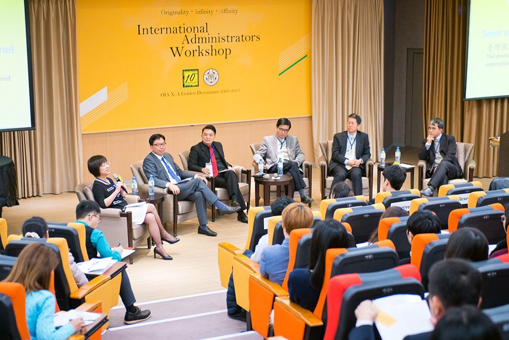 此次另外一個重要的亮點為國際長座談,由臺大傅友祥副國際長擔任主持人,邀請到教育部國際暨兩岸教育司畢祖安司長、國立臺灣師範大學游光昭國際長、實踐大學郭壽旺國際長、靜宜大學楊聲勇國際長,以及臺大張淑英國際長擔任與談人。與談中一致表示國際處未來除了持續擔任協調者角色與積極爭取資源之外,更重要的是讓國際事務工作與意識遍及全校師生及職員。而在面對國際化人才高流動率的課題下,期許藉由提供更多工作彈性及職能提升機會,使人才更能獲得熱情並發揮創造力。
