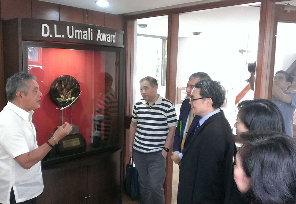 此行,臺大代表團亦拜訪國際水稻研究所(International Rice Research Institute, IRRI)。IRRI是聯合國糧農業研究組織中,專門負責水稻研究與推廣的研究中心。IRRI與臺大於2008年簽署第一份合作備忘錄,近年來臺灣與IRRI的研究人員針對全球氣候變遷對糧食作物生產造成之衝擊等相關議題密切合作,培養出良好的默契與相互信賴的友誼,更因此強化我國水稻研究與國際接軌。此次與IRRI的雙邊座談會由IRRI Resource Mobilization中心主任Mr. Oliver Frith主持,會議中國際氣候變遷與糧食生產專家Dr. Reiner Wassmann 介紹 ‟IRRI’s work on climate change mitigation: recent developments and prospects”,說明IRRI針對全球氣候變遷的因應對策。接著由國際馳名的植物病理學家Dr. Hei Leung 介紹IRRI,以及回顧1960年代以來IRRI和臺灣的各項淵源。而來自孟加拉的資深研究員Dr. Nasreen Khan的講題為‟Introduction to GIS/RS work from the perspective of climate change (disaster risk management-crop insurance work)”,會中大家對此些農業議題討論熱切,亦討論IRRI與臺灣大學未來將可進一步合作的研究項目及實作研習。