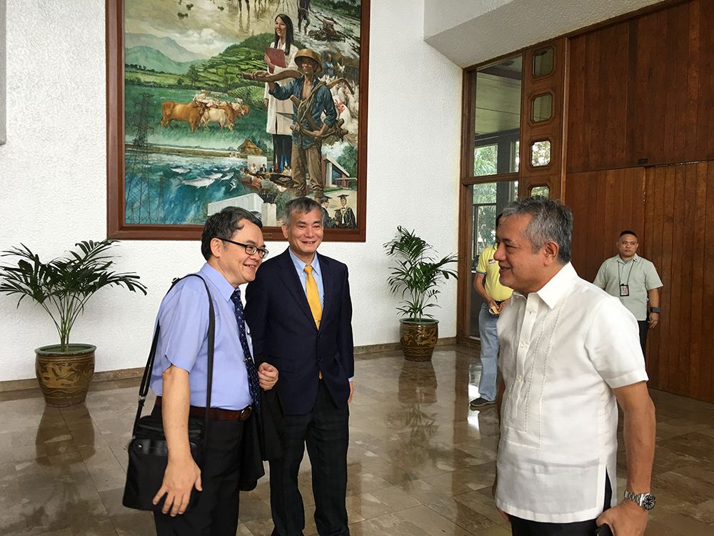 此次會議由SEARCA主任Dr. Gil C. Saguiguit主持,參與合作討論會議的SEARCA人員包括Knowledge management department 的Program Head Dr. Maria Celeste H. Cadiz、Graduate Education and Institutional Development Department 的Program specialist Ms. Camille Joy V. Enalbes及Biotechnology Information Center 的Dr. Maria Monina Cecilia A. Villena等人。Dr. Saguiguit表示過去幾年來,臺灣為培訓東南亞各國生技人才不遺餘力,雙方建立了深厚的友誼。郭鴻基教務長及盧虎生院長提到我國現在對於「新南向」的重視,以及「新農業」帶來的契機,希望能進一步拓展臺大生農學院與SEARCA所屬各會員國間,在農業科技研究以及高等教育上的實質交流合作。會中討論的重點包含規劃近期內針對全球氣候變遷、糧食安全、生物多樣性、水資源管理、有機農業推廣、休憩農業發展、生物資源保存、生物資訊應用等議題共同舉辦Workshop, 讓臺灣與東南亞各國的研究人員有機會互相討論,並攜手合作解決農業生產問題。會中也談到了關於東南亞學生到臺灣大學留學,或進行短期學習的議題。Dr. Saguiguit 說明SEARCA會員國間有Graduate Study Program,可提供獎學金給學生至各會員國進修,部分會員國以外的夥伴國家 (Associate member)也會提供相關獎學金。郭鴻基教務長表示,未來可考量藉由Joint Scholarship的方式由臺大與SEARCA共同設立獎學金,鼓勵更多優秀東南亞人才到臺大就讀,也可以邀請本校教授至SEARCA會員國的大學授課,增進彼此交流。本校生農院生物科技研究所(生技所)劉嚞睿所長則在會中說明生技所的全英語授課課程,另此次中研院農業生物科技研究中心葉國楨主任(為生技所合聘教師)亦一同前往討論共同合作之方案。會談結束後,全員接著移動到大會場準備進行備忘錄簽署儀式,SEARCA專家群及菲律賓大學(University of the Philippines, Los Baños; UPLB) 農學院院長 Prof. Enrico P. Supangco也前來觀禮,生農院國際農業教育與學術交流中心王淑珍主任與UPLB Prof. Edna A. Aguilar 討論雙邊農學研究之機會。簽約儀式開始前先播放SEARCA以及臺灣大學生農學院的介紹影片,並回顧了雙方歷年來的交流活動。簽約儀式由郭鴻基教務長擔任見證人,盧虎生院長及Dr. Saguiguit共同簽署備忘錄,郭教務長致詞時特別強調,簽約後雙方應積極研擬具體合作項目加強交流。