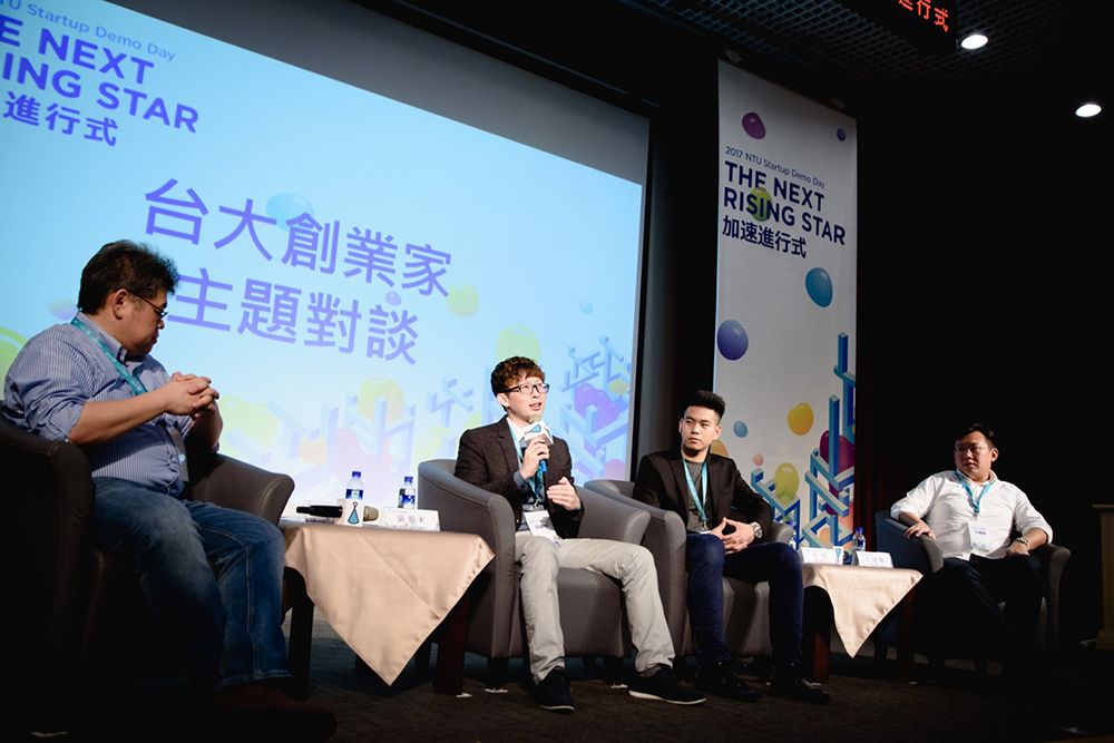 臺大創業生態圈人脈廣大,給予新創團隊豐沛資源,新一期臺大創創加速器團隊招募即將截止,歡迎新創團隊進駐。(左起)橡子園創投合夥人瞿志豪,PicSee共同創辦人吳振和,TourMeAway創辦人于煊與宇陽能源科技總經理方耀華。