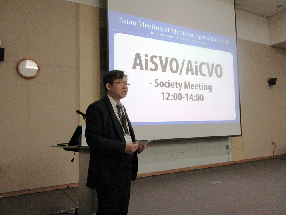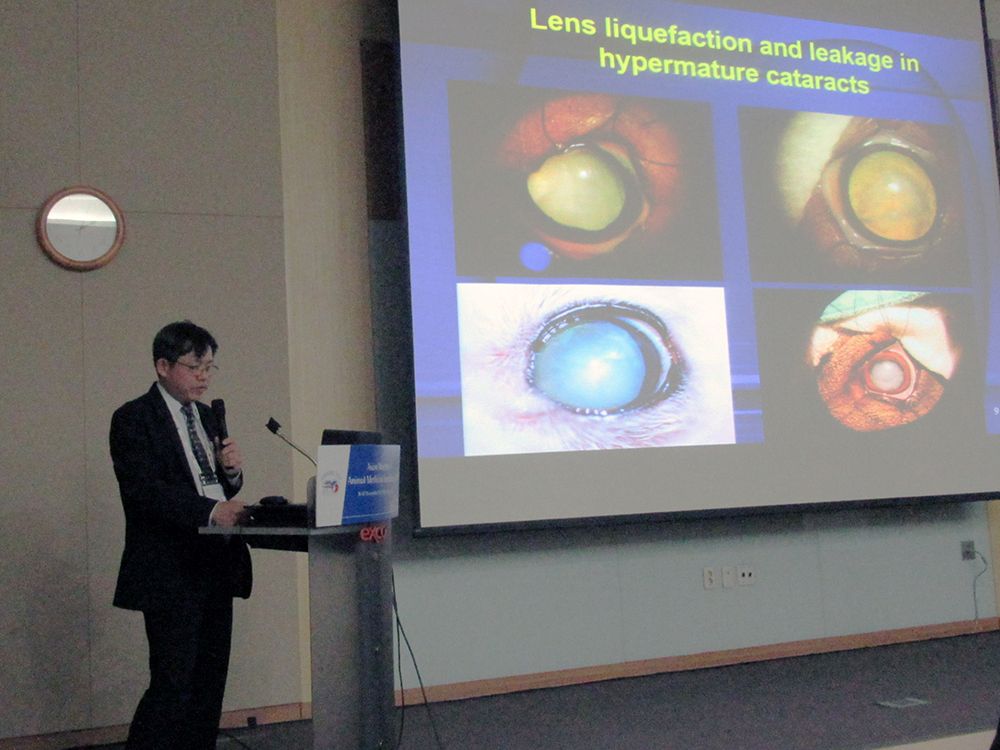 2017年11月11日至12日在韓國主辦的亞洲獸醫專科醫學會聯合會(AMAMS)及亞洲獸醫眼科專科醫師院士學院(Asian College of Veterinary Ophthalmologists, AiCVO)及亞洲獸醫眼科醫學會(Asian Society of Veterinary Ophthalmology, AiSVO)聯合年會中,獸醫專業學院臨床動物醫學研究所林中天教授應邀發表演講,演講的題目為:「Cataract surgery by phacoemulsification in small animals(小動物白內障超音波乳化顯微手術的技術要領)」。在本次大會中,改選下屆專科醫會長及幹部,林教授連任下一任亞洲獸醫眼科專科醫師院士學院院長(President of AiCVO)以及亞洲獸醫眼科醫學會會長(President of AiSVO),副會長是日本眼科獸醫師Dr.Kato。