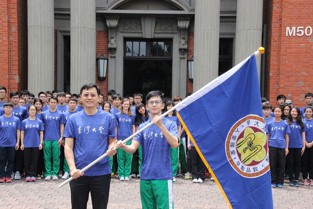 為替107全大運參賽選手加油打氣,4月20日(五)上午11時30分在行政大樓前廣場,由郭代理校長大維親臨主持授旗典禮。