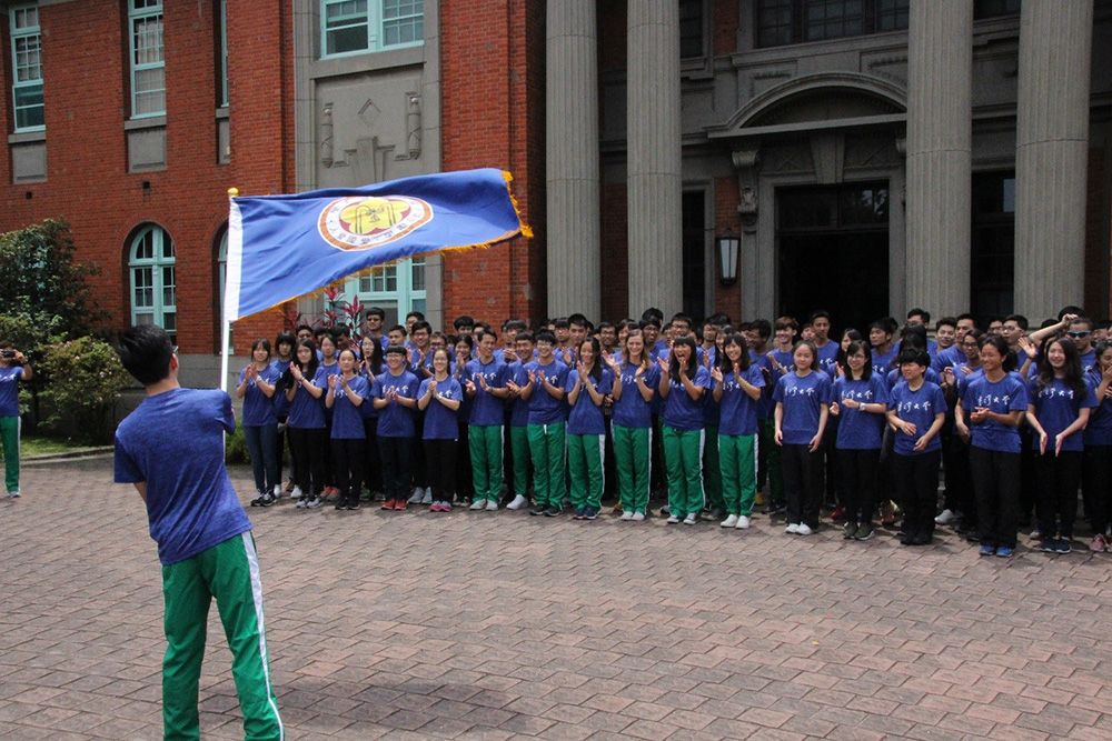 授旗儀式由校長將校旗授與運動員代表田徑隊隊長電機系四年級莊世聿同學,象徵揚帆啟程、旗開得勝。校長也嘉勉選手,107全大運再接再厲,締造佳績。