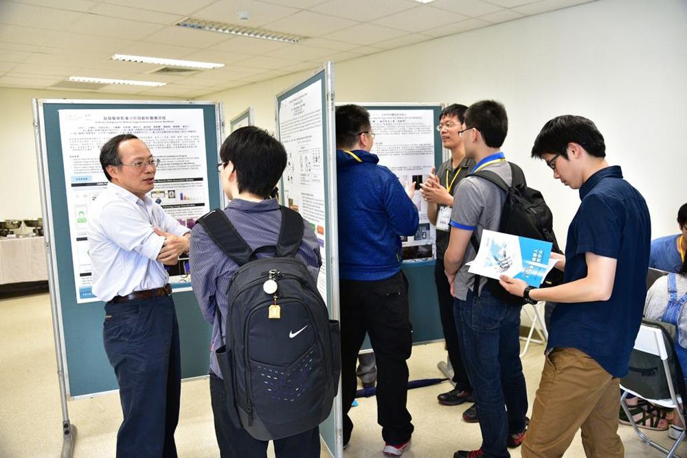 另外,為促成校級中心間的跨領域交流,特於中午時段舉辦海報交流活動,此舉獲得許多中心一同共襄盛舉,共有16組海報參加展示。在此感謝臺大遠距照護中心、智慧機器人及自動化國際研究中心、科技部人工智慧技術暨全幅健康照護聯合研究中心、生醫倫理中心、智慧生活科技整合與創新研究中心、功能影像及介入治療研究中心/安克生醫、機械系林沛群教授、電機所黃升龍教授、王奕翔教授、數學系王偉仲教授、語言所李佳霖教授及來自中心內傅立成主任、人工智慧理論組張智星組長、認知與行為科學組葉素玲副主任、馮怡蓁所長及黃從仁教授等人大力支持及派員現場解說,與會者的反應都非常熱絡。