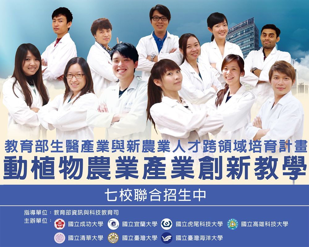 為推動國家新農業之發展政策,國立臺灣大學生物資源暨農學院積極爭取教育部「生醫產業與新農業跨領域人才培育計畫」- A類「生醫產業與新農業學產研鏈結人才培育計畫」補助,已於107年5月11 日揭牌成立動植物農業產業創新領域教學推動中心。中心成立旨在培育農業產業跨領域人才、建立產學互動合作機制與平臺,促進產業與學界之間的連結。
