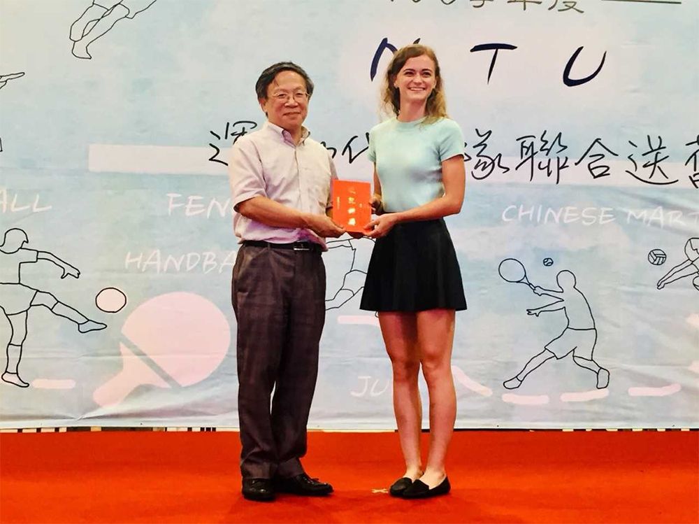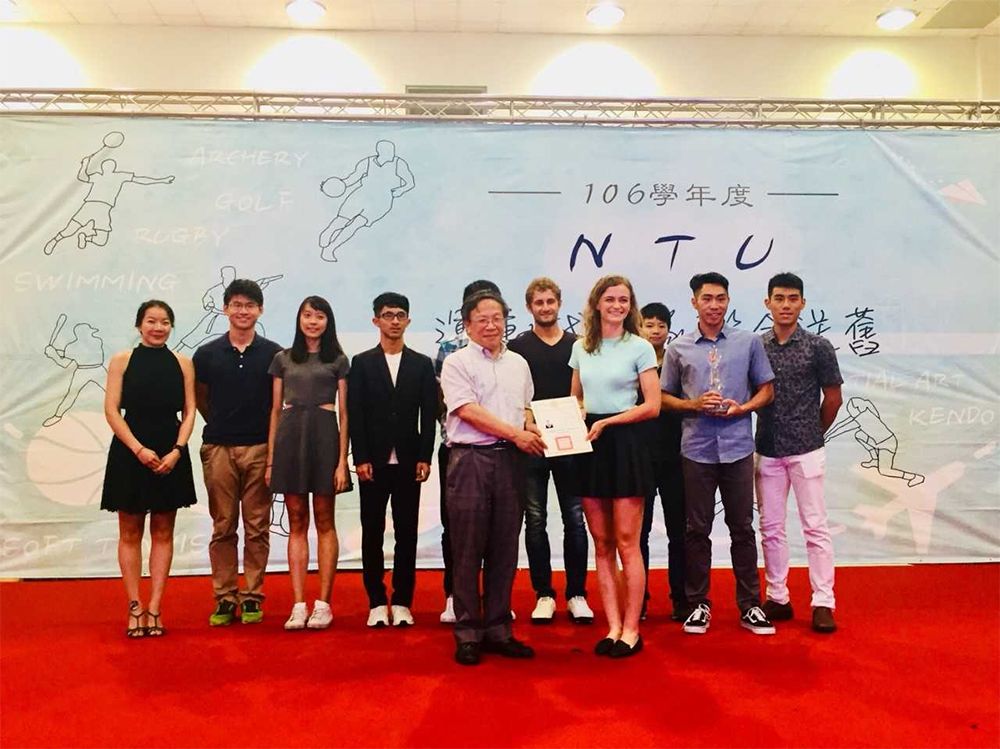 晚會的序曲由張副校長慶瑞揭開,張副校長非常驕傲地分享今年全大運榮獲13金26銀及19銅,合計58面獎牌,在161所參賽學校排名第六,非體育科系校院中排名第一,成績優異。最後張副校長亦祝福畢業生能秉持運動精神,持續在未來各行各業中發光發熱,並能回饋社會。接著由貴賓郭教務長鴻基致詞,除讚嘆全大運優異表現外,特別讚揚已成立72週年的臺大特色橄欖球隊今年重奪睽違5年的乙組寶座,以及由一般生組成的足球隊今年榮獲公開二級組冠軍,晉級公開一級組,期待明年再創佳績。最後由體育室大家長康正男主任致詞,除特別感謝校方給予各項體育活動的大力支持外,並感謝各運動代表隊隊員及師長,為校爭光的努力與付出。隨後依照慣例,由張副校長慶瑞頒發運動代表隊證書給今年171位畢業生,感謝他們在校期間的付出及為校爭取榮譽的表現。另今年有田徑及游泳等3項3人次破全大運紀錄;田徑隊政治系四年級林莉馨同學在一般女生組200公尺準決賽以成績25秒85打破大會紀錄25.87,游泳隊工管系一年級卓承齊同學在公開男子組400公尺混合式決賽中成績以4分24秒04打破大會紀錄4分28秒80,生工系二年級黃渼茜同學在公開女生組50公尺蝶式成績27秒68打破大會紀錄27秒89,由張副校長頒發破紀錄獎金,獎勵他們在今年全大運打破大會紀錄的優異表現。另值得一提,游泳隊黃渼茜同學及卓承齊同學是2017年臺北世界大學運動會國家代表隊選手,現正備戰參加2018年亞運選拔,期待持續為校為國爭光。
