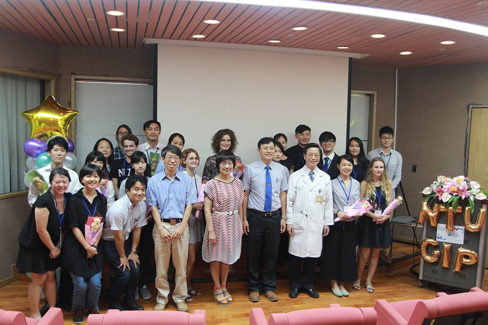 臺大郭校長、張國際長、醫學院張院長、鄧副院長與GIP全體同學合影