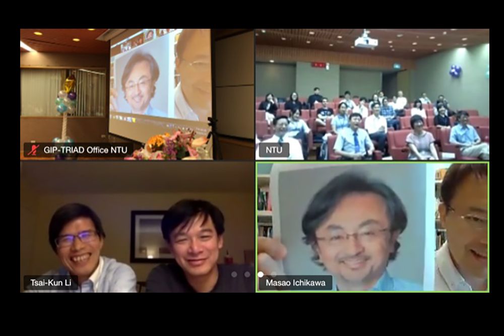臺大GIP主任李財坤教授、日本筑波大學GIP代表- Masao Ichikawa教授、法國波爾多大學GIP主任- Dominique Rolin教授致詞同步連線畫面