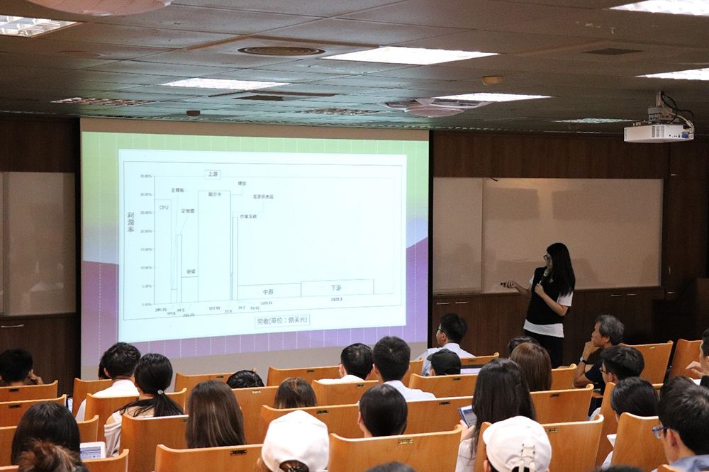 另外,為強化同學們的專案實作能力,課程專題報告選定臺灣企業具有全球或局部競爭優勢的9大產業,讓同學們分析這些大產業的全球概況,並從而思索臺灣企業在相關產業的未來發展方向。方法上,同學們必須先拆解該產業的上、中、下游價值鏈,找出每一產業鏈環節的全球主要廠商,再運用利潤池(profit pool)的概念分析每一階段的規模與獲利性指標,從而建立出該產業景觀(industry landscape)。然後同學們得推敲產業利潤池分析的合理性,解釋背後的可能成因,以及針對臺灣企業在該產業所處的競爭態勢及未來成長作出建議。在課程專題的期末報告上,每一小組得就自己的產業分析內容進行口頭及書面報告,並由老師們及同學們共同評分及進行問答。藉由這樣的行動學習內容,希望同學們能逐步認識臺灣企業在全球市場中的地位及前景,塑造其「立足臺灣,放眼全球」的胸襟。
