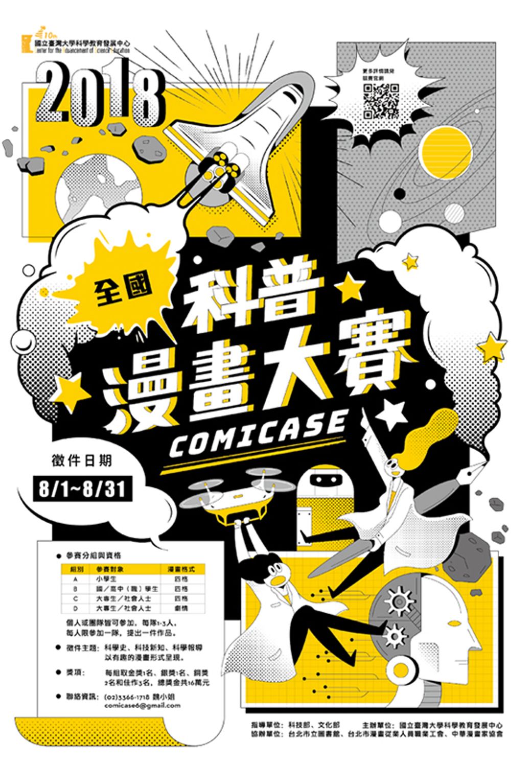 協辦單位:臺北市立圖書館、臺北市漫畫從業人員職業工會、中華漫畫家協會臺大科教中心:高涌泉主任 02-33665137競賽顧問:漫畫家徐碧娟(木笛) 0936-491-480