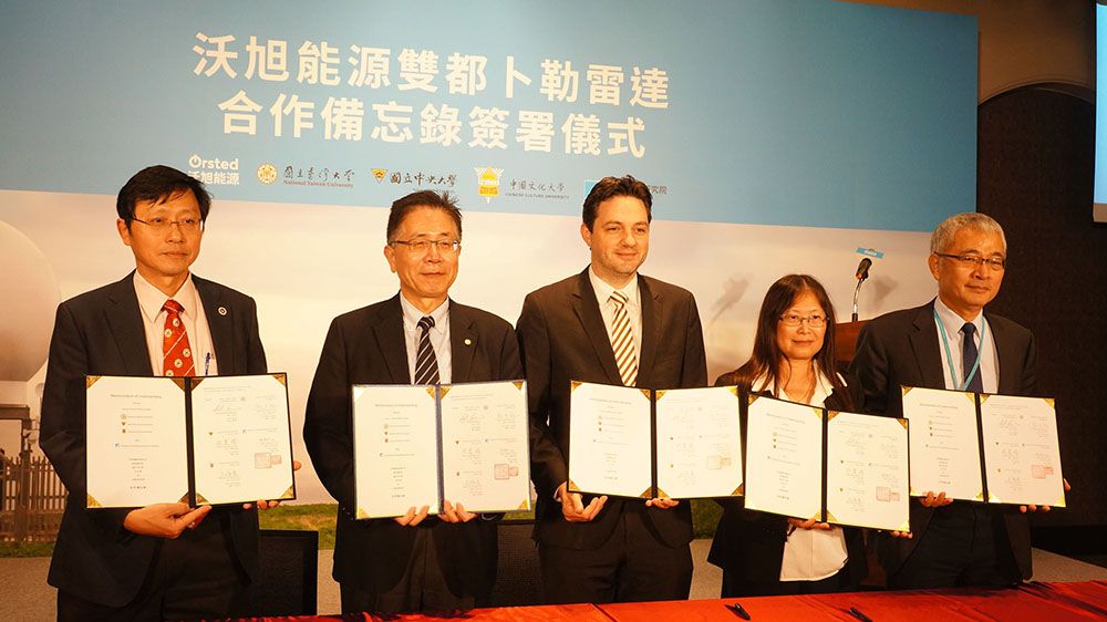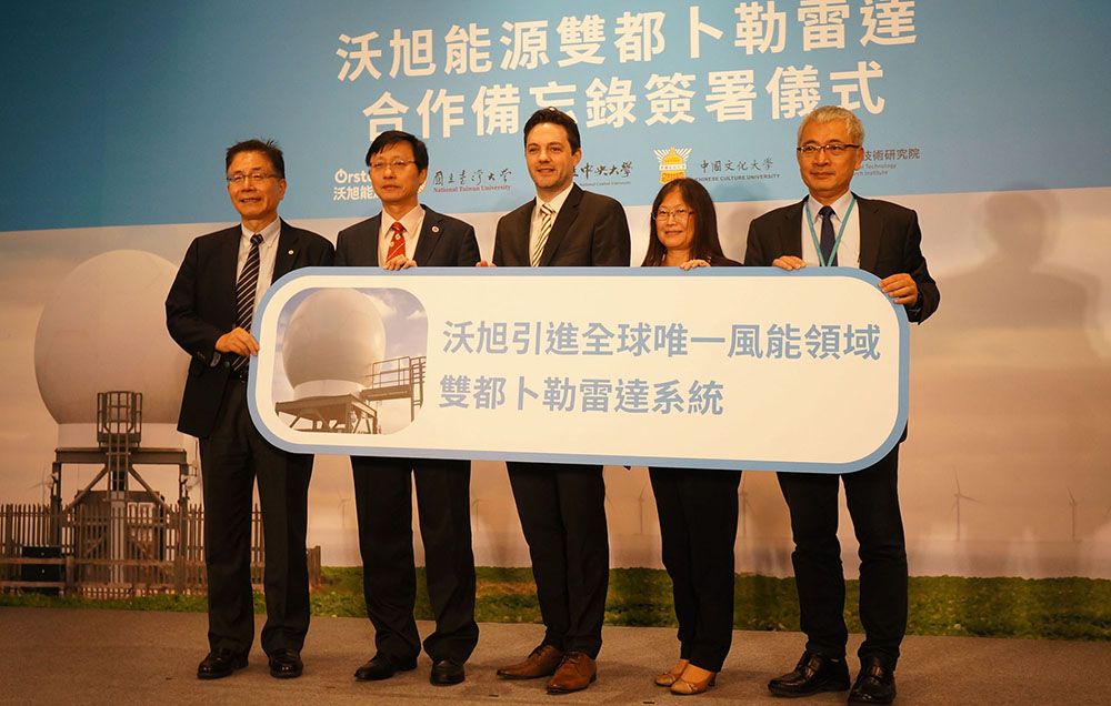 全球離岸風電領導廠商沃旭能源(Ørsted)今天宣布在台啟動雙都卜勒雷達計畫,串聯國立臺灣大學、國立中央大學、中國文化大學和工業技術研究院建立全面的知識交流網絡並簽署合作備忘錄,期待透過數據蒐集發展風能相關氣象參數觀測收集、數據處理分析、客製化預報產品整合技術,進一步研究颱風及熱帶氣候的氣象動態對離岸風場的影響,協助臺灣政府實現氣象觀測研究目標。