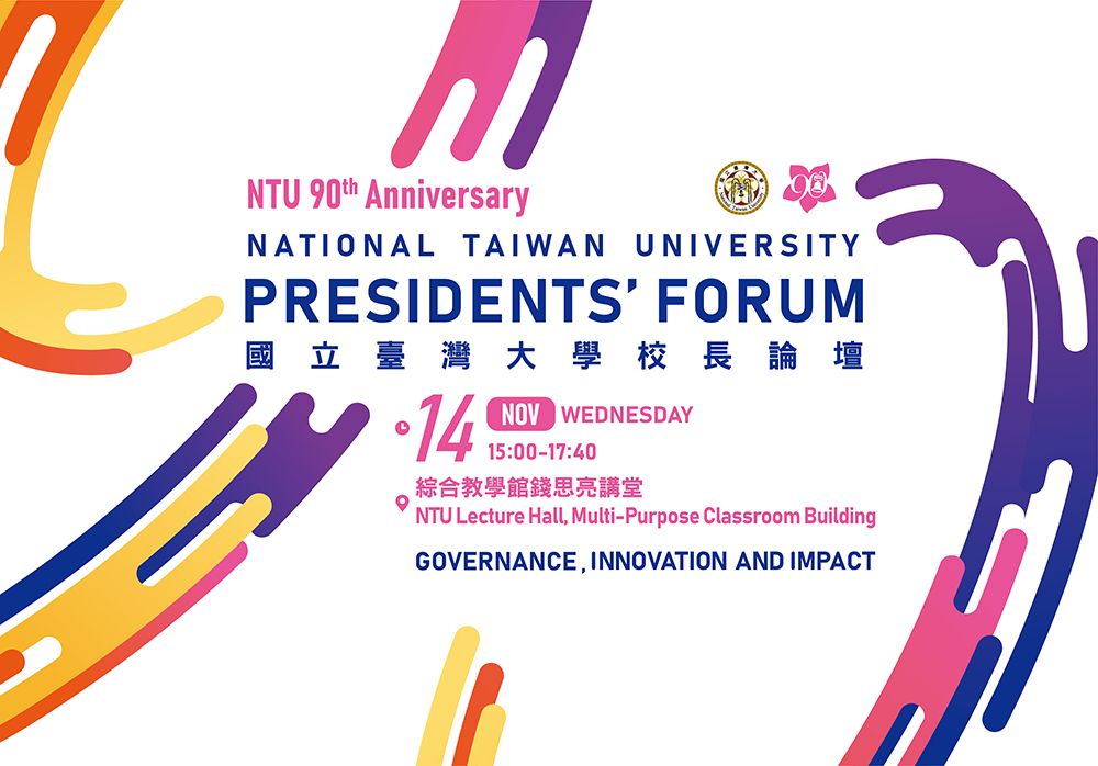 為慶祝臺大90校慶,國際事務處特舉辦NTU 90th Anniversary Presidents’ Forum,邀請世界知名大學校長分享治校理念,來自加拿大、法國、土耳其、日本、韓國、泰國、香港、馬來西亞、阿拉伯聯合大公國等校長,對於如何在全球化潮流開創深廣格局,提出鞭辟入裏的治理策略,闡述高教如何發揮影響力,落實大學社會責任。敬邀本校教職員生蒞臨共襄盛舉,全場以英文進行。