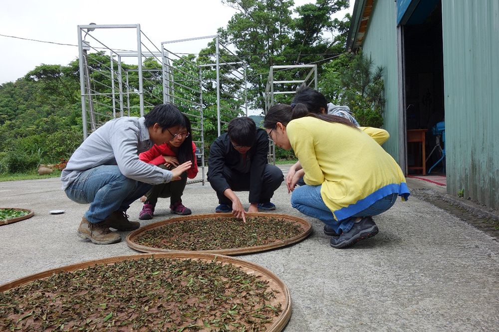 同學舉辦茶鄉小旅行,邀請國外學者訪客一同參加,體驗採茶製茶,學習坪林環境生態與產業的緊密關係。