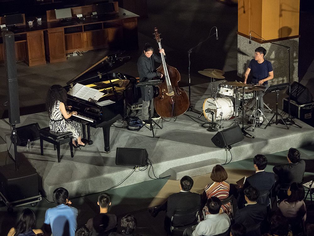 音樂會以爵士三重奏進行,領銜擔任首次音樂會演出的爵士鋼琴家許郁瑛小姐,今年甫獲第28屆金曲獎演奏類「最佳專輯製作人獎」、「最佳專輯獎」和「最佳演奏錄音專輯獎」多項殊榮,她也是臺大圖資系畢業的校友。邀請共同演出有低音提琴手徐梵先生、鼓手林偉中先生,二位專研樂理多年,演出經驗豐富,在爵士音樂圈內相當活躍。